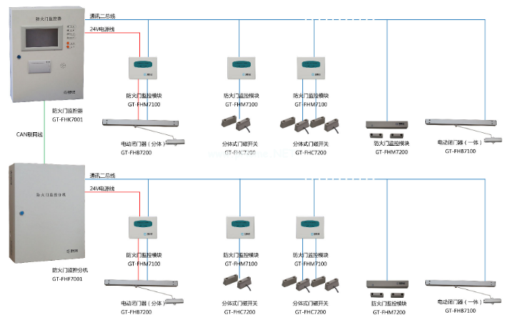 防火門、閉門器和防火門釋放裝置三部組成。防火門可以是符合GB12955-2008《防火門》的鋼質防火門、木質防火門、玻璃防火門;閉門器是符合GA93-2004《防火門閉門器》緩沖液壓式防火門閉門器,防火門釋放裝置符合Q/SZBC01&2007《常開防火門釋放裝置》。防火門按照平時的開啟狀態分為三種:一種是平時呈開啟狀態,火災時自動關閉,稱之為常開式防火門,一種為平時關閉狀態,有人走動時,要推動門開啟,人走過后在閉門器作用下自動關閉,有恢復到關閉狀態,稱之為活動式防火門。另外一種,平時保持關閉狀態,只有通過授權的人才能通行,在緊急情況下自動釋放防火門使人員通行,稱之為常閉式防火門。